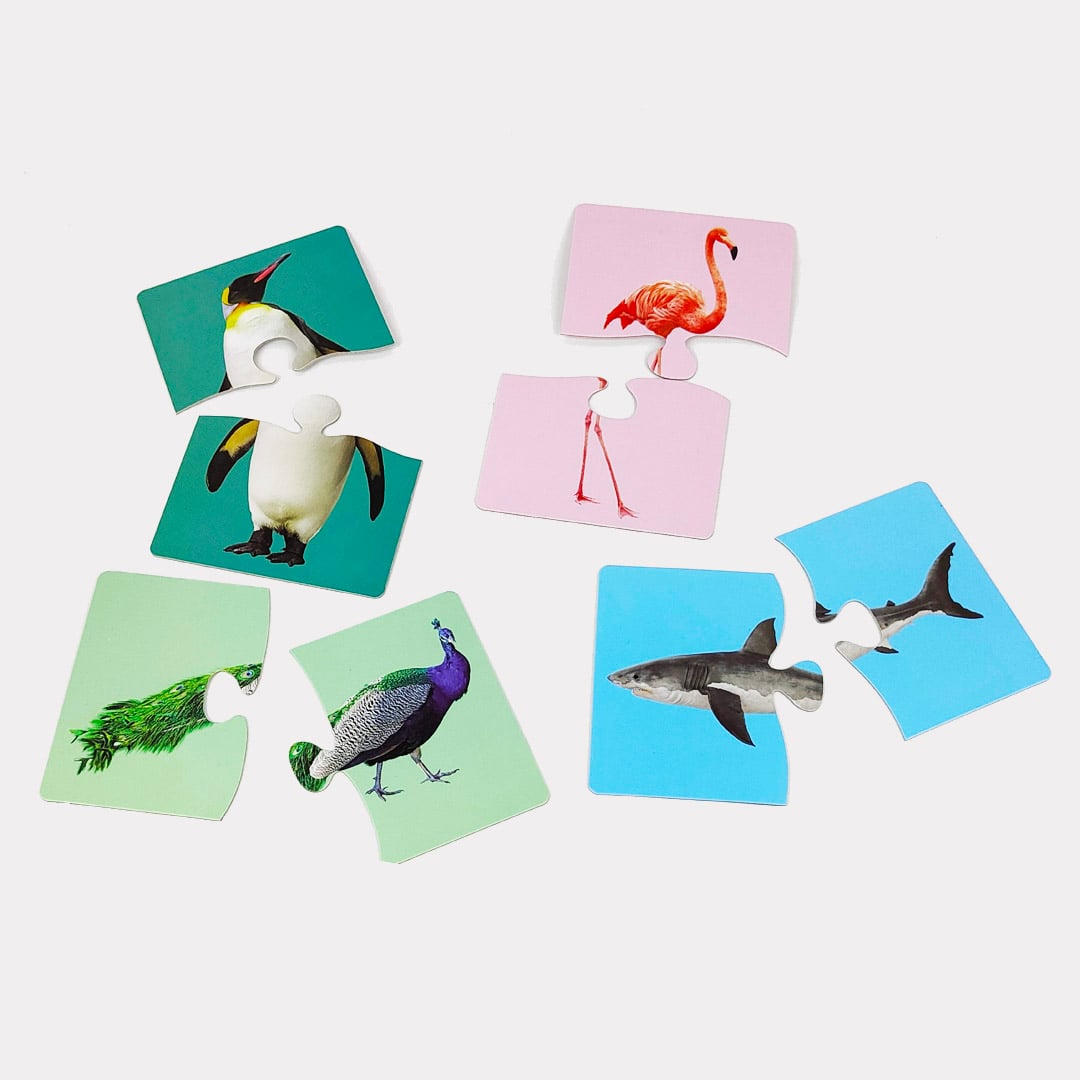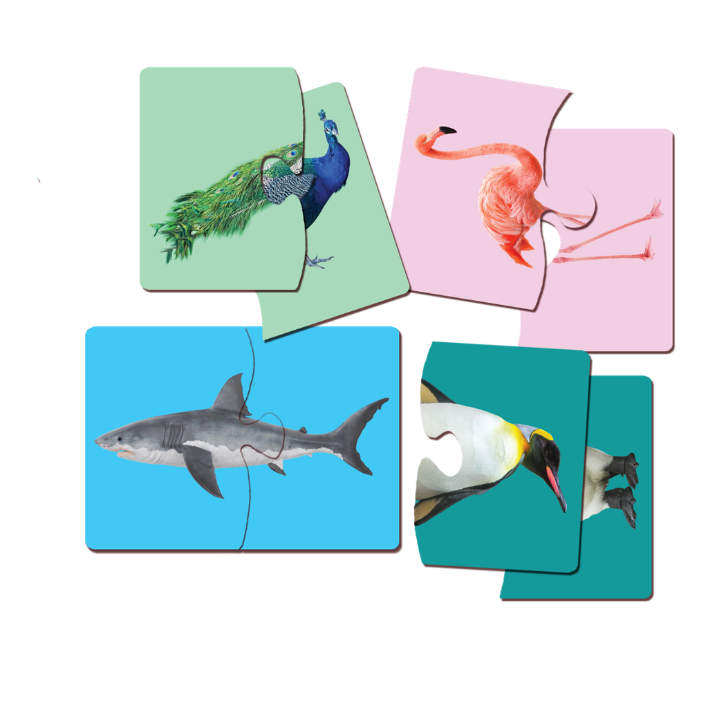 Chơi Độc lập: Trong bộ ghép hình này, hai mảnh ghép của hai con vật khác nhau sẽ không thể ghép lại được với nhau. Tính chất “tự điều chỉnh” cho phép trẻ tham gia vào trò chơi độc lập, khuyến khích trẻ khám phá và giải quyết vấn đề một cách tự lập.