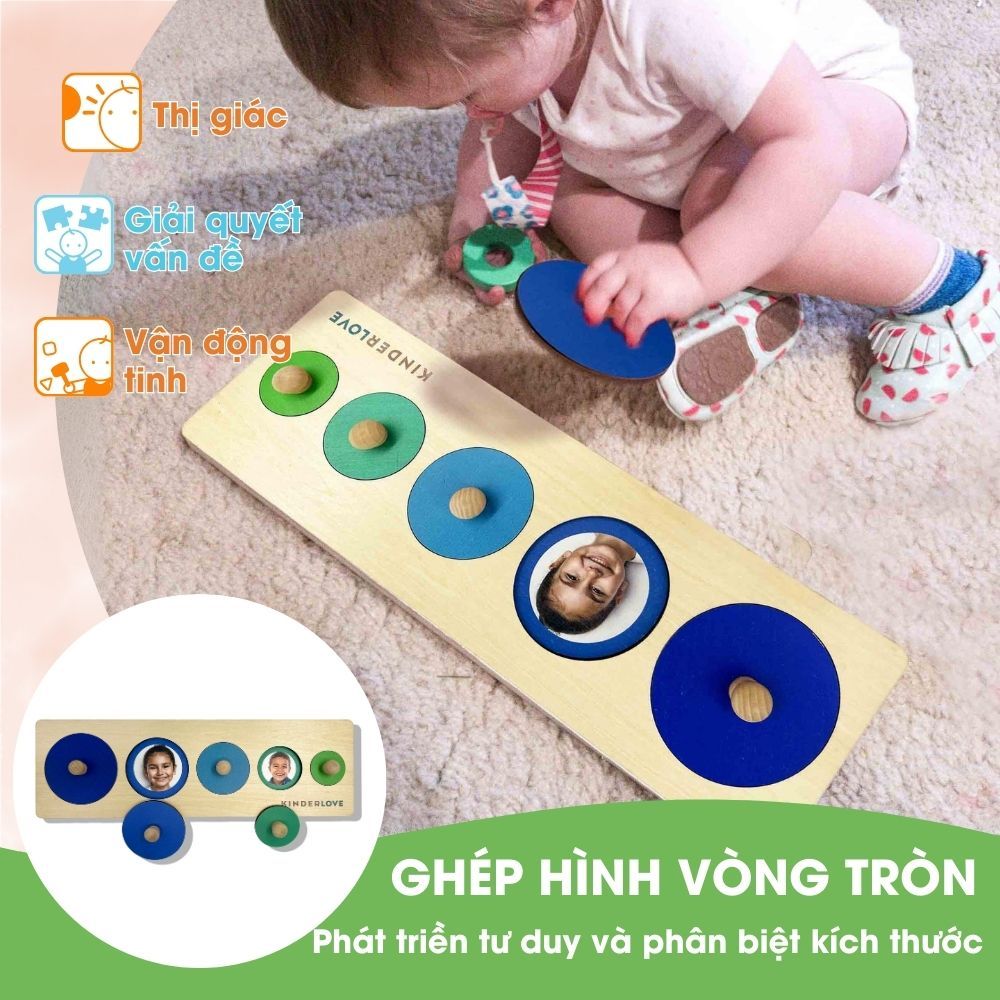 Ghép Hình Vòng Tròn là đồ chơi Montessori giúp trẻ phát triển tư duy và khả năng giải quyết vấn đề. Đồng thời, nó giúp trẻ nhận biết và tìm hiểu về hình dạng, kích thước và màu sắc thông qua quá trình ghép hình. Việc nhìn thấy hình ảnh các bạn nhỏ sau mỗi miếng ghép khiến trẻ thích thú!