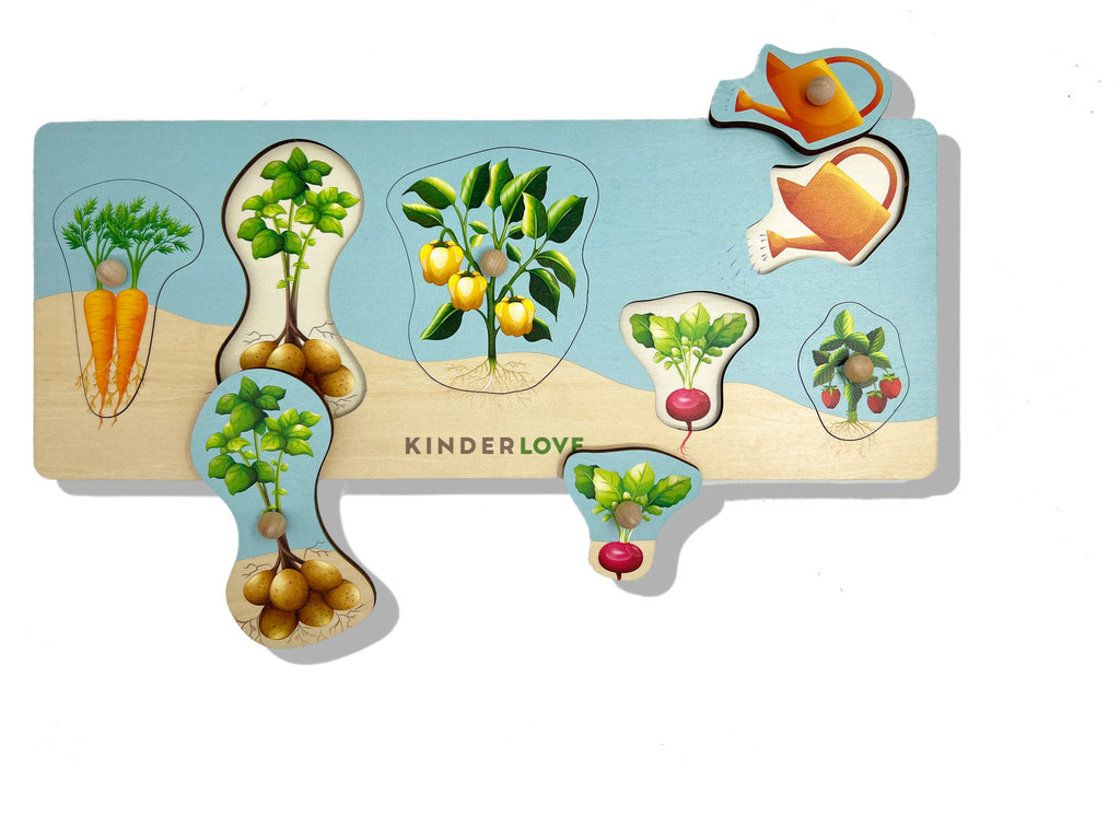 Đồ chơi Ghép Hình Vườn Rau này có kích cỡ phù hợp với trẻ, đồ chơi gỗ an toàn và dễ sử dụng. Chúng giúp trẻ phát triển tư duy, rèn luyện khả năng cầm nhón của ngón tay, tăng khả năng tập trung, phân biệt được các loại rau củ.