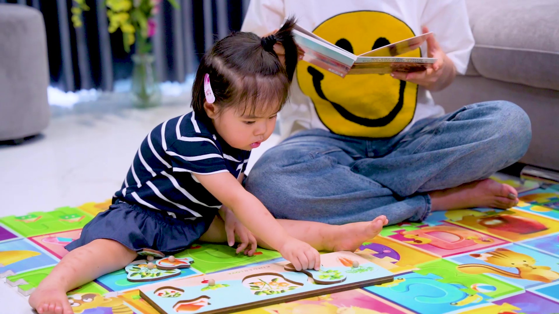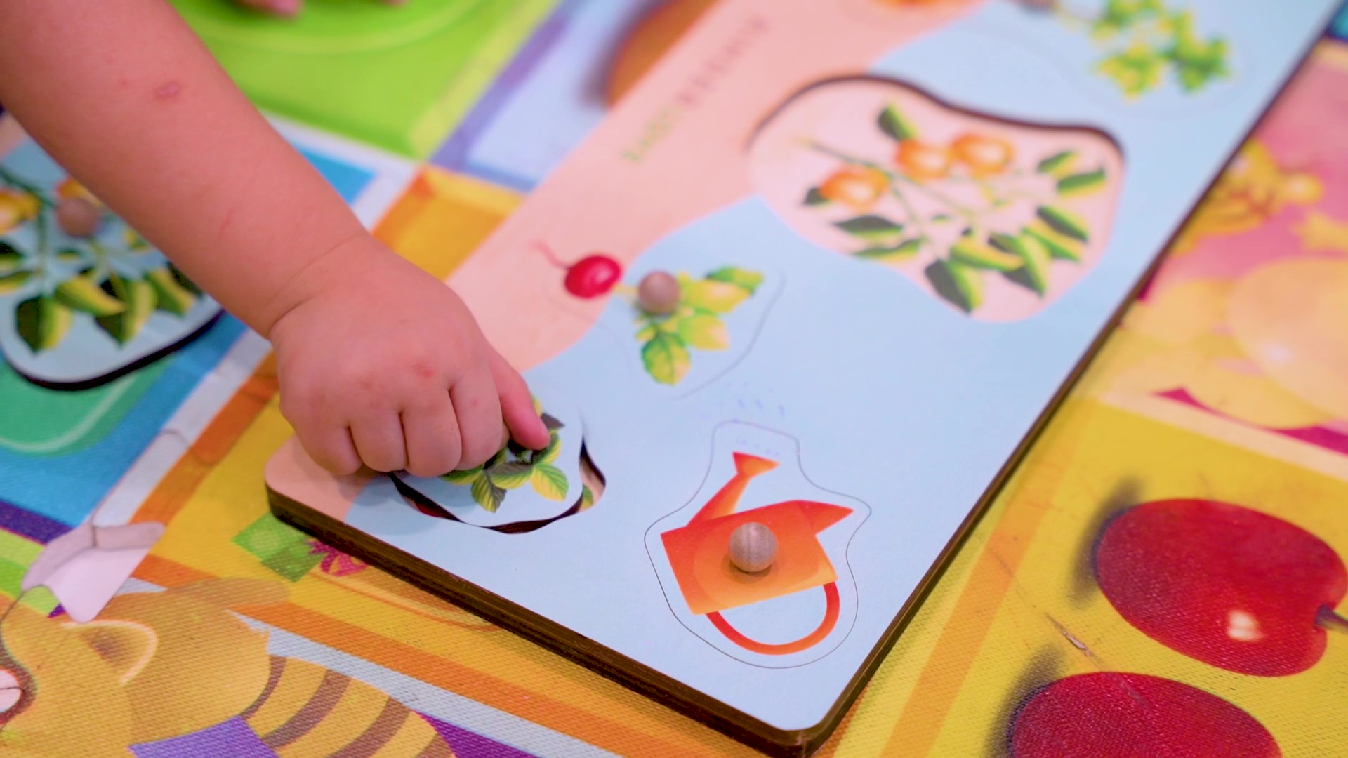 Những miếng ghép có hình dạng không đối xứng - trẻ sẽ phải học cách xoay chúng cho đúng góc độ để lắp vào. Nếu trẻ gặp khó khăn về định hướng miếng ghép, hãy gợi ý cho trẻ rằng “lá” nằm ở trên và “rễ” ở phía dưới.