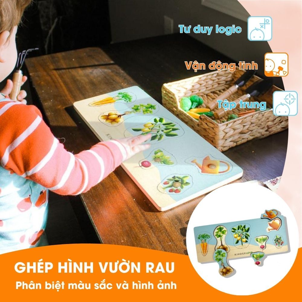 Ghép Hình Vườn Rau là đồ chơi gỗ giúp trẻ phát triển tư duy và khả năng giải quyết vấn đề.Qua quá trình ghép hình, trẻ học nhận biết và tìm hiểu về hình dạng, kích thước và màu sắc. Đồng thời, trẻ được tìm hiểu về các loại rau củ quen thuộc.