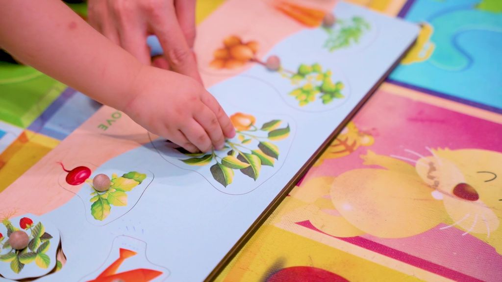 Phân Biệt Màu Sắc và Hình ảnh: Các miếng ghép được thiết kế nhiều màu sắc và hình ảnh các loại rau củ khác nhau, giúp bé học nhận biết và phân loại hình ảnh qua quá trình ghép hình.