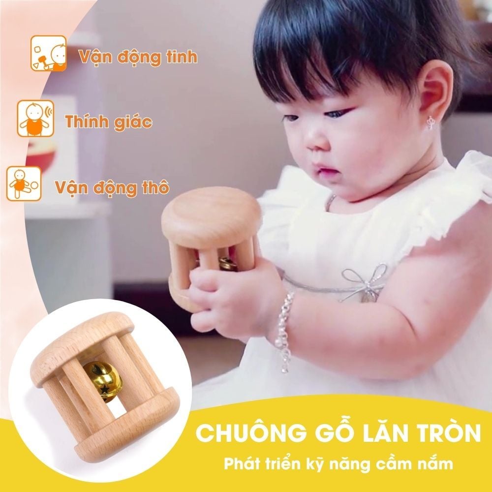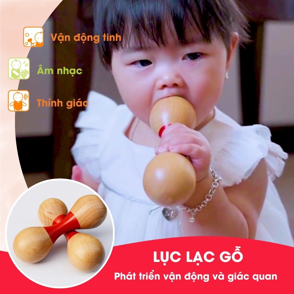 Lục lạc cổ điển bằng gỗ kích thích thính giác, giúp bé học cách dõi theo âm thanh, tập cho bé làm quen với nhịp điệu, kích thích phát triển khả năng cảm thụ âm nhạc sau này. Chi tiết