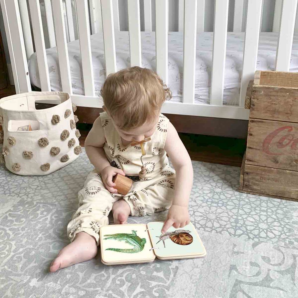Sách Gỗ Màu là đồ chơi cho trẻ sơ sinh có những hình ảnh sinh động về các con vật đáng yêu, không chỉ là món đồ chơi mà còn là một công cụ giáo dục cho trẻ. Những trang sách này giúp trẻ làm quen với nhịp điệu và âm thanh trong ngôn ngữ, hình thói quen yêu sách từ khi nhỏ. Chi tiết