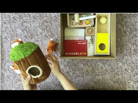 Bộ đồ chơi có hai phần: Gốc cây và 3 chú cáo bằng bông. Hãy để trẻ khám phá và phát hiện ra có thể đưa cáo bông vào lỗ và sau đó tìm cách để lấy chúng ra ngoài.