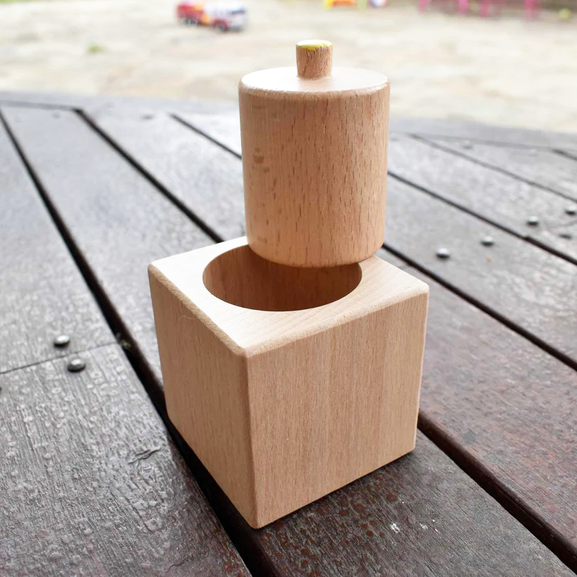 Ban đầu, trẻ có thể để đế gỗ trên sàn và dùng một tay thuận để nắm trụ gỗ đút vào đế. Khi trẻ đã quen với hoạt động hơn, trẻ có thể cầm đế bằng một tay và trụ bằng tay còn lại.