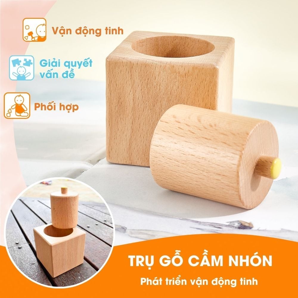 Trụ Gỗ Cầm Nhón là món đồ chơi giáo dục rèn luyện kỹ năng cầm nắm, vận động thô và vận động tinh của trẻ. Thêm vào đó, còn giúp phát triển tư duy logic cho trẻ.