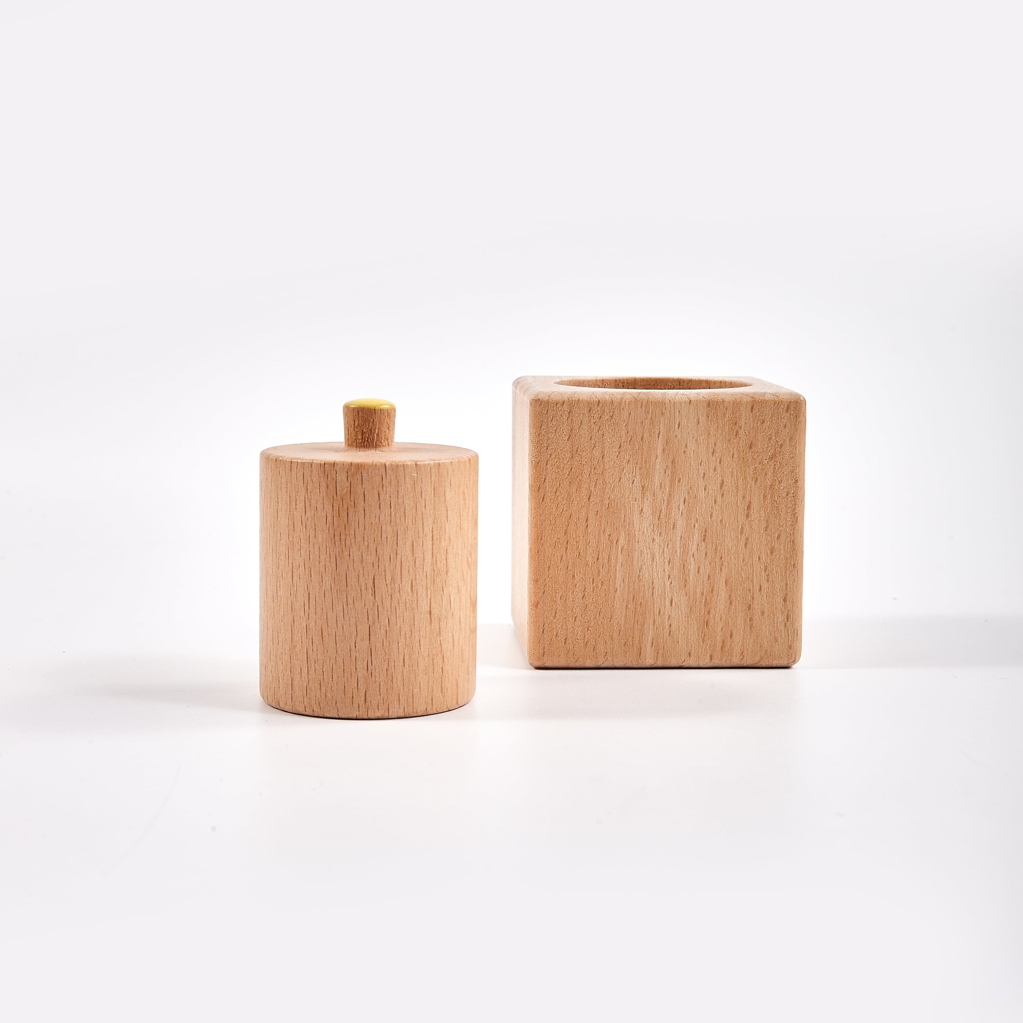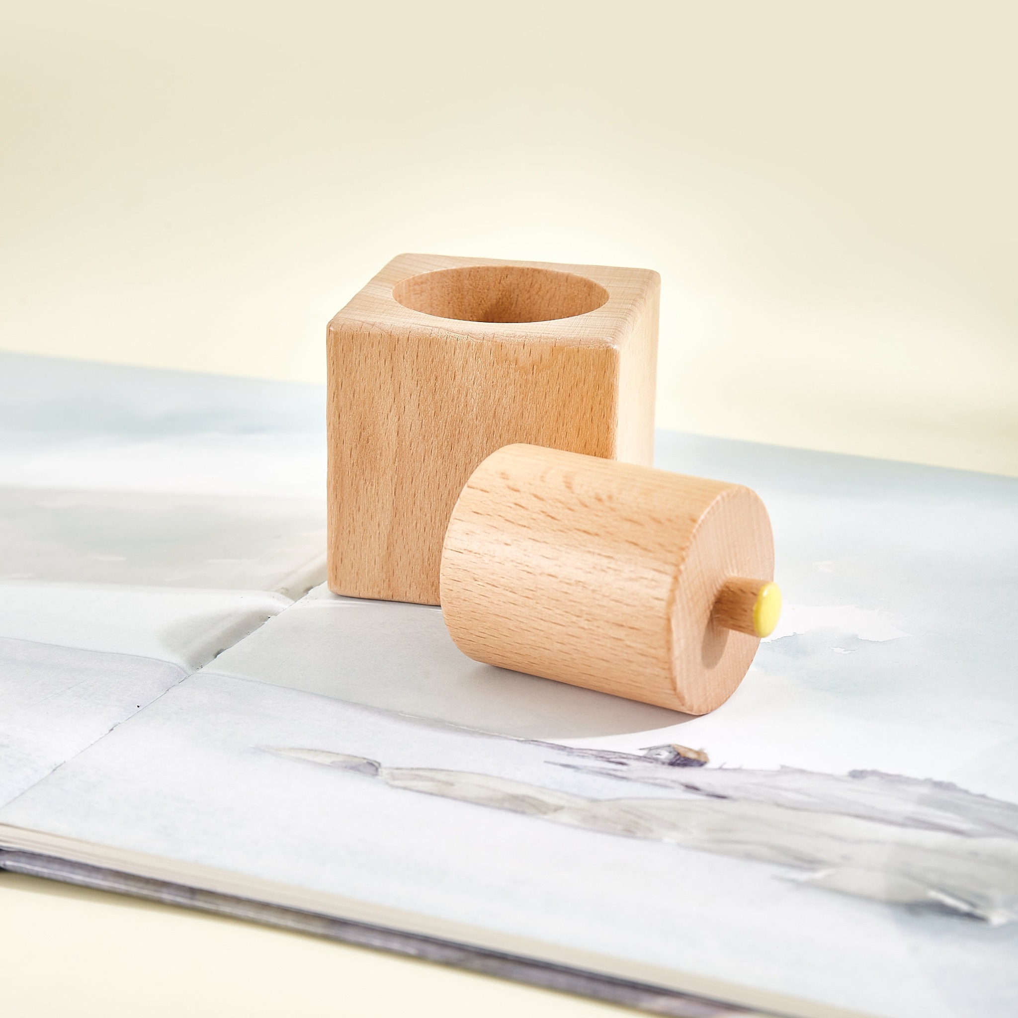 Ba mẹ hãy hướng dẫn trẻ lấy trụ gỗ ra khỏi cái đế và để trụ gỗ vào lại một cách nhẹ nhàng và chính xác.
