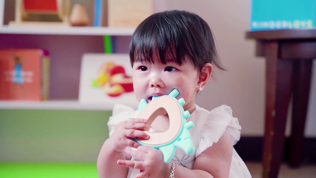 Vận động tinh: Nắm giữ và thao tác với chiếc vòng gặm nướu giúp phát triển kỹ năng vận động tinh và hoàn thiện khả năng phối hợp giữa tay và mắt.